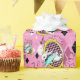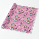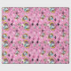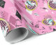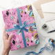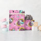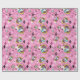 el conejo blanco es atrasado por una fecha importante en este papel de embalaje. Los conejos blancos en chaquetas de la aguamarina saltan a través de marcos contra un fondo rosado, completos caóticos, número-llenados con relojes de arena, relojes, y formas del diamante. Papel de regalo perfecto para una Alicia en cumpleaños temático o ducha del país de las maravillas.