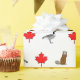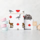 Un dibujo de los animales del dibujo animado nativos a Canadá, a los alces, el castor, y al ganso de Canadá, junto con las hojas de arce rojas entre los animales.