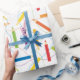 El papel de regalo de este niño lindo tiene un diseño coloreado del lápiz en él. Es parte de una selección agradable de papel de embalaje disponible de Superkalifragilistic.