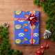 La acción del superhéroe del muchacho colorido de la diversión redacta el papel de embalaje. Un dibujo animado azul que mira el fondo, con amarillo, las palabras del verde, del rojo, y blancas y las burbujas de la acción adorna este papel de embalaje de la diversión. Personalizar para añadir cualquier texto adicional que usted quiera.
