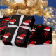 Papel de embalaje negro con el cráneo, las estrellas y los copos de nieve