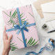Papel de embalaje de hoja de palma, abrigo tropical rosado verde