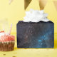 Papel de embalaje con un diseño de la galaxia y los racimos de estrellas que remolinan. Grande para cualquier fan o alguien del espacio que apenas amen la estrella que mira. Viene con una frontera negra que para requisitos particulares usted pueda modificar con un nombre o un mensaje para esa persona especial.