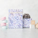 La dispersión de la pequeña lila azul-violeta florece el oll de relleno el espacio en un fondo blanco. Papel de embalaje floral
