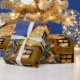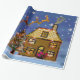 El ilustracion gráfico del trineo de Santa, árbol de navidad, adornó la casa, en un paisaje nevoso del invierno. Envuelva para arriba su regalo en este papel de alta calidad, brillante y aclare encima de las vacaciones.