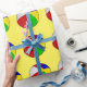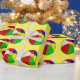 El papel de embalaje mostrado con una pelota de playa linda imprime en un fondo amarillo. Modifique este artículo para requisitos particulares o cómprelo como es.