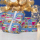 El papel de embalaje perfecto para un regalo para cualquier persona que está en el ciclo y que tiene gusto de diseño limpio, moderno. El diseño es un modelo de los ilustraciones clásicos de la bici inspirados por el artista Mondrian y su trabajo abstracto geométrico con los bloques sólidos de color dentro de las ruedas. Los colores incluyen azul, amarillo, púrpura, verde, el naranja y el gris concreto. Gran papel de regalo para las nueces de ciclo. Usted puede cambiar el color de fondo azul al juego usando el botón del personalizar.