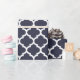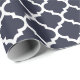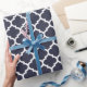 Papel de envoltorio para regalos del modelo del quatrefoil de los azules marinos. Mate impresa, brillante de alta calidad, lino o papel de regalo de papel de Tyvek. Diseño marroquí clásico del quatrefoil del ogee, hecho e impreso en los E.E.U.U. Ideal para el cumpleaños, aniversario y regalos o regalos de Navidad de boda.