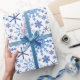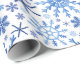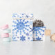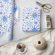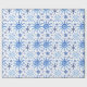 Celebre las vacaciones usando este papel de embalaje festivo de los copos de nieve de la acuarela para presentar sus regalos a los amigos y a la familia. Las características del diseño un modelo de la repetición con un fondo blanco y copos de nieve variados en diversas sombras del azul.