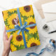 Los girasoles modelan el papel de embalaje. Un papel de embalaje diseñado con un modelo del girasol en de gran tamaño. Si usted prefiere un más tamaño pequeño, usted puede modificarlo para requisitos particulares y reducir el modelo del girasol de una manera fácil.