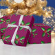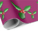 El papel de embalaje mostrado con un fondo del color del ciruelo con un acebo festivo del día de fiesta imprime. Modifique este artículo para requisitos particulares o cómprelo como es.