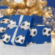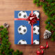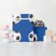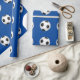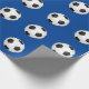 El papel de embalaje mostrado con un balón de fútbol de los deportes imprime en un fondo azul. Modifique este artículo para requisitos particulares o cómprelo como es.