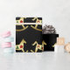 Papel de embalaje del navidad con los caballos mecedora hermosos del oro que se adornan con los elementos del diseño del día de fiesta incluyendo un árbol de navidad, una guirnalda, y campanas del día de fiesta. Papel de regalo sus prsents en el estilo, estilo del día de fiesta.