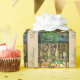 La reproducción magnífica del vitral de Nouveau Tiffany del arte del vintage de un jardín maravilloso del agua con las flores de Lilypads y de Lotus está en este papel de embalaje del feliz cumpleaños.