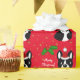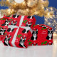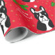 Papel de embalaje divertido del perro de Boston Terrier para las vacaciones. Rojo del navidad y modelo de los copos de nieve. ¡Usted puede modificar el texto y más para requisitos particulares! Dibujo animado único y caprichoso del perro creado por Naomi Ochiai de Japón.