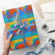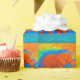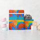El elefante anaranjado brillante marcha a través del papel con los colores brillantes que lo rodean