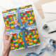 Papel de embalaje del feliz cumpleaños de los bloques huecos en colores de azul, de rojo, de amarillo, el naranja y el verde. Modifique el texto para requisitos particulares sin embargo que usted quiere.