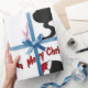 Este papel de embalaje está de un gato negro que lleva un gorra de Papá Noel y dice "Felices Navidad".