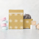 Papel del navidad del oro con los copos de nieve blancos.