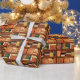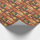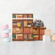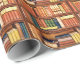 El papel de embalaje de encargo que ofrecía un ilustracion del modelo del vintage de estantes de madera llenó de los libros viejos coloridos. Un papel del regalo de la diversión para un aficionado a los libros, un lector ávido, un profesor, un bibliotecario, un escritor, o una librería.
