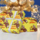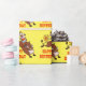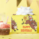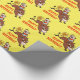 Encuadierne al vaquero del rodeo que monta un toro con el papel de envoltorio para regalos del texto del feliz cumpleaños