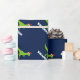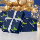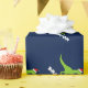 Papel de embalaje lindo del navidad del dinosaurio para los niños. Dinosaurio verde del rex de t con el giftwrap del gorra de Santa personalizado con nombre de los childs. El diseño prehistórico divertido del papel de regalo del dinasaur para el día de fiesta de los niños pequeños presenta. Haga uno para el hijo, nieto, recién nacido, nieto. Ilustracion animal del dibujo animado del t-rex pre histórico salvaje para los niños. Rex del Tyrannosaurus de Papá Noel de la diversión. Azul de encargo del IE del fondo del color.
