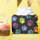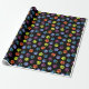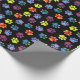 Una diversión y un papel de embalaje colorido que ofrecen la pata del arco iris imprime en un fondo negro.