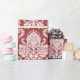Papel de embalaje floral blanco y rojo del damasco - características un fondo rojo con una impresión floral blanca del damasco. Las opciones se fijan al mate. Usted puede cambiar el tipo de papel a brillante, al lino y a otras opciones a la derecha de la parte superior.