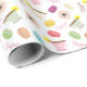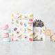 Papel de embalaje que ofrece un modelo temático de la comida francesa de macarons, de tazas de té, de las flores de la anémona, y de "Bonjour!"