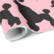 ¡Explote sus calcetines del bobby y zapatos de silla de montar y comience a bailar! Este papel de embalaje inspirado falda rosada del caniche parece una falda clásica del caniche de los años 50. Las características del diseño la imagen de repetición de una silueta negra de un caniche en un fondo rosado. ¡Está comenzando a parecer mucho los años 50!