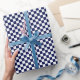 Un papel de embalaje diseñó con un modelo a cuadros del azul marino y blanco en talla media. Usted puede cambiar los azules marinos para un diverso color.