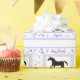Papel de embalaje para las fans del caballo y del potro, con el feliz cumpleaños escrito en él. O diseñe sus los propios, les dan un momento muy especial en que ven su foto en este papel de embalaje. La boda, bebé, días memorables, mascota amado, or/and escribe un mensaje. Ahora diséñela. Añada el color de fondo.
