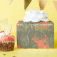 El papel de embalaje que ofrece un camuflaje diseña con un ilustracion de un ciervo anaranjado. Personalice el texto.