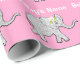 El elefante lindo personalizó el papel de embalaje de Baby Shower para los chicas con su NOMBRE o SU TEXTO mecanografiado en la caja de texto a la su derecha. El color rosado del papel de regalo del fondo y del texto se puede cambiar a cualquier color. Vea las instrucciones abajo o llame a Linda para realizar cambios del color y de diseño o PARA AYUDARLE: 239-949-9090