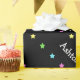 Un colorido, estrellas del navidad de la diversión diseña con amarillo, verde, azul y el rosa protagoniza en un fondo negro clásico. Añada fácilmente su nombre de encargo.