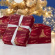 Este papel de embalaje personalizado festivo de las Felices Navidad del rojo y del oro tiene el árbol dorado del navidad o del día de fiesta con las cintas y polvo de estrella en él. Si usted necesita cualesquiera artículos a juego, o si usted necesita ayuda o cambios, envíe por correo electrónico por favor niteowlstudio@gmail.com.
