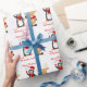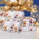 Este papel personalizado caprichoso festivo y de la diversión de las Felices Navidad de embalaje tiene un reno sospechado rojo lindo del dibujo animado que agita y un pingüino que agita del dibujo animado en un casquillo de Santa en un fondo blanco con los copos de nieve rojos pálidos. Si usted necesita cualesquiera artículos a juego, o si usted necesita ayuda o cambios, envíe por correo electrónico por favor niteowlstudio@gmail.com.