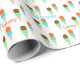 Papel de embalaje colorido del cumpleaños hecho en blanco, con un modelo colorido del cono de helado. Personalice el texto azul y anaranjado para adaptarse a su ocasión.