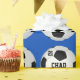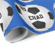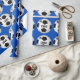 Papel de embalaje personalizado del fútbol con su TEXTO y COLORES del equipo. Mecanografíe adentro el NOMBRE del jugador de fútbol y su NÚMERO del jersey o su MONOGRAMA o apenas suprímalo. Vea las instrucciones abajo en cómo cambiar el TEXTO negro y los colores de fondo azules. Haga que sus regalos del navidad del fútbol y los regalos de cumpleaños del fútbol y final del fútbol van de fiesta las ideas para los jugadores de fútbol.
