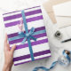 Este papel de embalaje simple, moderno ofrece tres sombras de púrpura en un modelo rayado del ombre.