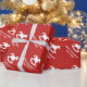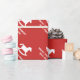 Papel de embalaje rojo del navidad del caballo mecedora del niño. Abrigo de regalo de vacaciones lindo para los pequeños niños. Añada su propio nombre y estaciones personalizados que saludan como Felices Navidad o buenas fiestas. Conveniente para el muchacho o el chica. El embalaje de moda rueda con final brillante o mate.