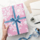 Papel de embalaje rosado del modelo del copo de nieve del navidad. Es modelo hermoso y clásico. Perfeccione para el navidad o envoltorio para regalos y el hacer a mano del día de fiesta.