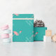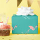 Papel de embalaje tropical del navidad del flamenco rosado con saludos personalizados del nombre y de las estaciones. Diseño lindo del giftwrap de Navidad con el pájaro tropical que lleva un gorra de Papá Noel. Día de fiesta divertido que envuelve las fuentes para las mujeres y los niños de los hombres. ¡Felices Navidad! Azules turquesas o color de fondo del personalizado. Disponible en mate y brillante.