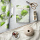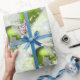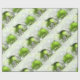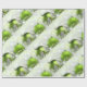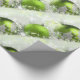 Papel de embalaje atractivo del navidad con los ornamentos purpurinoso verdes hermosos del navidad, las luces chispeantes blancas, las perlas de plata brillantes y la malla.