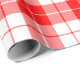 Papel de envoltura diseñado con un patrón de estrías rojas y blancas en grandes dimensiones. Personalizar el fondo blanco entre otras opciones.
