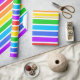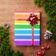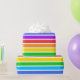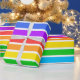 Papel de envolver diseñado con un patrón rayado con colores arcoiris brillantes y blanco de gran tamaño.