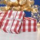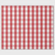 Papel de envolver diseñado con un diseño de gingham blanco y rojo oscuro en grandes dimensiones.