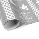 Dos palomas de paz blancas simples con el papel de regalo de boda de las cintas en blanco gris y azul. Modifique para requisitos particulares con sus pares que casan nombres y que casan la fecha. Diseñado únicamente por Sarah Trett.