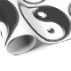 Yin y Yang son dos contrarios que trabajan juntos en equilibrio y armonía. Es simbólico en historia china y coreana así como el Taekwondo. El papel de regalo negro de Yin Yang ofrece el símbolo del zen en negro con un fondo blanco.