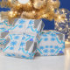Este papel de envoltura azul para Navidades elefantes fue diseñado por la artista Amanda DeShane.